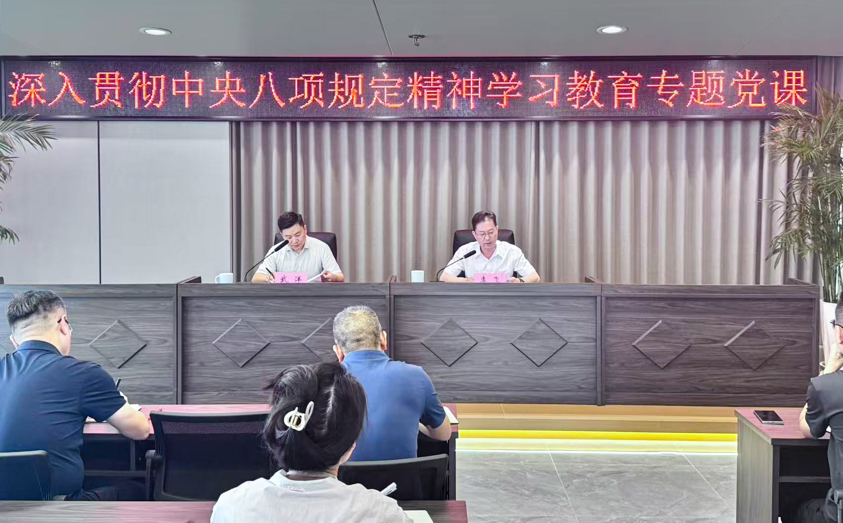 11 07月2025 了解詳情 武洋到東昱集團(tuán)作學(xué)習(xí)教育專題黨課報(bào)告 7月11日上午,副區(qū)長(zhǎng)武洋到東昱建投,圍繞深入貫徹中央八項(xiàng)規(guī)定精神學(xué)習(xí)教育,為集團(tuán)公司黨員作專題黨課報(bào)告,專題黨課報(bào)告由集團(tuán)公司董事長(zhǎng)李飛主持,集團(tuán)公司全體黨員干部30余人參加。
