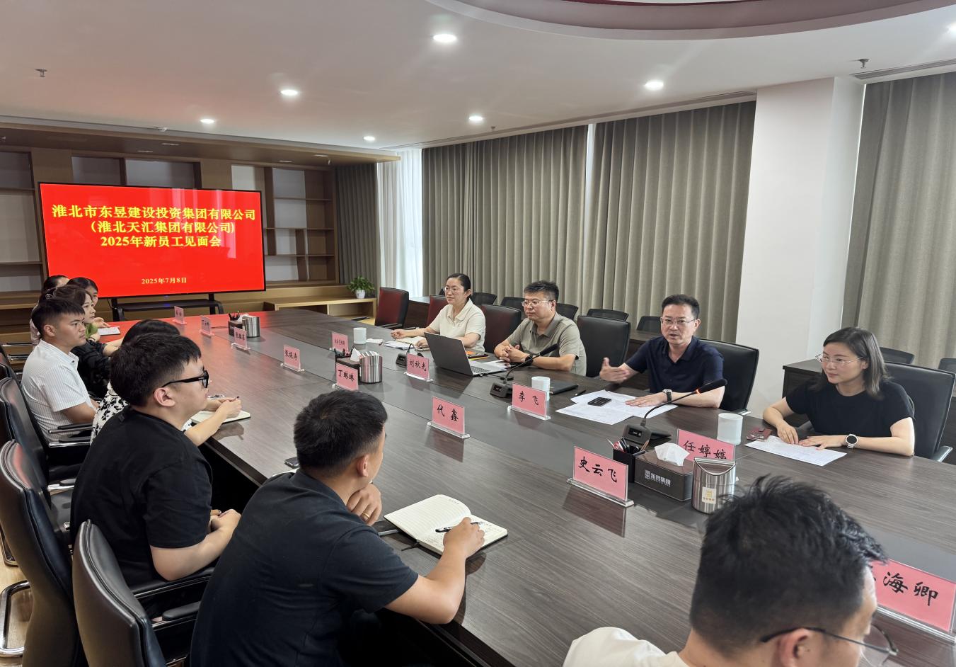 09 07月2025 了解詳情 淮北市東昱建設(shè)投資集團(tuán)有限公司召開2025年新員工見面會(huì) 7月8日下午,淮北市東昱建設(shè)投資集團(tuán)有限公司舉行2025年新員工見面會(huì),集團(tuán)公司董事長(zhǎng)李飛、總經(jīng)理任婷婷、董事會(huì)秘書劉秋光出席會(huì)議,14名新入職員工參加見面會(huì)。
